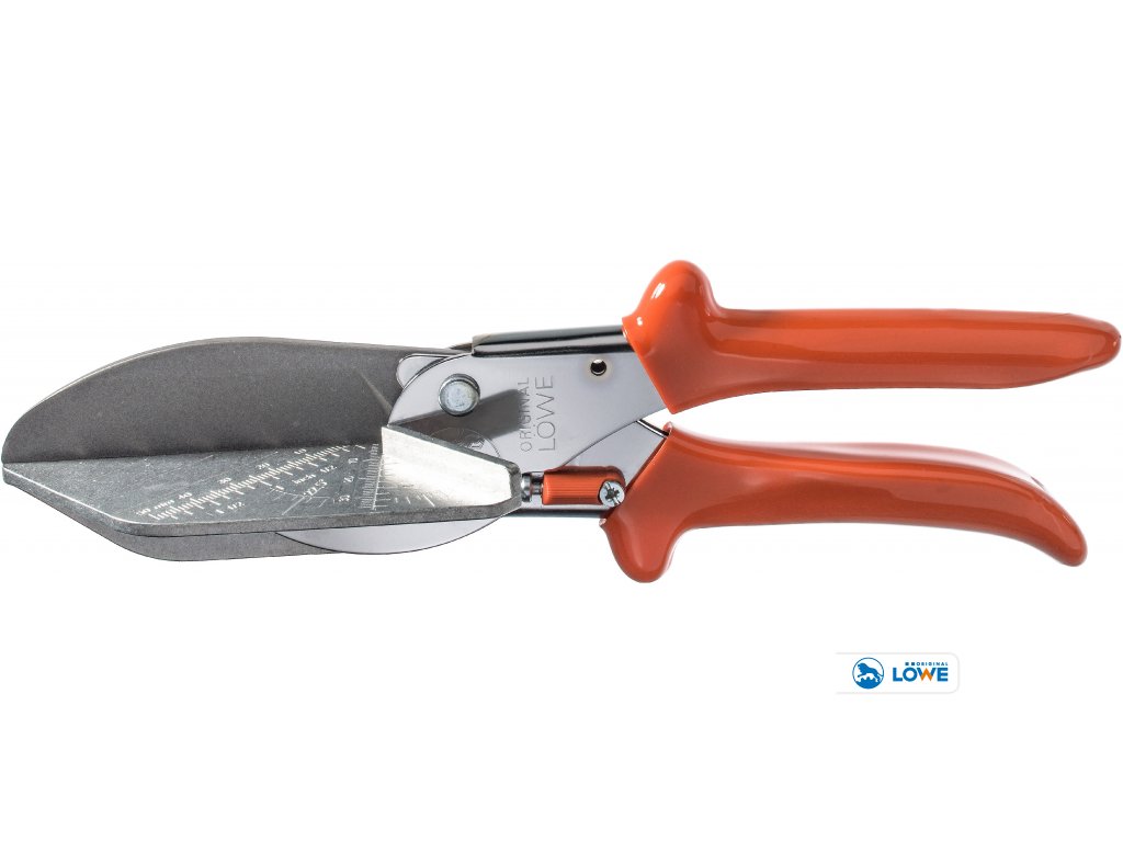Úhlové nůžky s dorazy 45o - střih 75mm. Stejně jako model 3104, ale s dlouhou čepelí. S dorazy na 45°. Vhodné na úhlové střihy širokých materiálů. Tyto nůžky s dorazy jsou vybaveny obzvláště dlouhými čepelemi, což napomáhá dosáhnout přesné 45° nebo 90° střihy u širších lišt, profilů a těsnění z plastu, gumy nebo dřeva. Pro obzvlášť tvrdě a ploché materiály, které vyžadují větší úsilí k přestřižení, jsou tyto modely volitelně k dispozici s pákovým převodem. Použití pro tyto materiály: Dřevo, Plast, Guma, PVC, Kůže. Použití: Profily, Lišty.